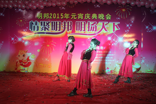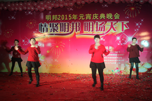 元宵庆典晚会节目丰富多彩,有“明邦版”有趣的小苹果舞蹈、美丽动人的“雪山姑娘”舞蹈等,员工热情高涨、十分活跃、精彩不断,展示了明邦人积极向上的精神。